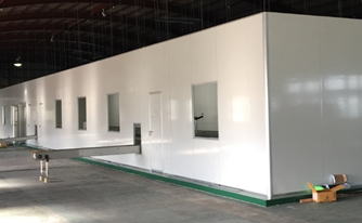 天井・かべ・は、断熱材入りのカラー鋼板製のクリーンルームパネルを使用し役物(縁取り)は、全てアルミ製を使用しております。